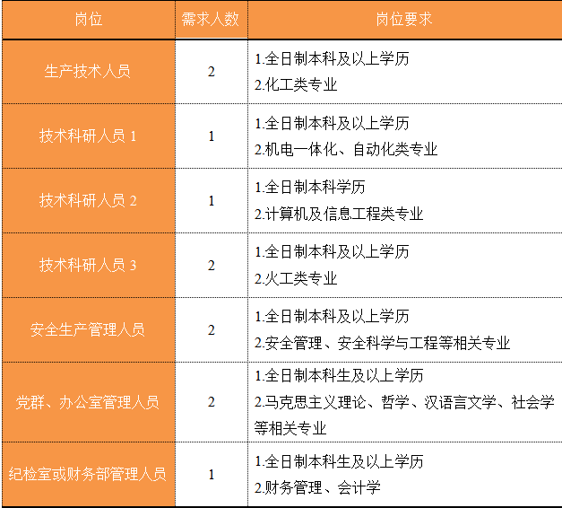 福建省機電(控股)有限責任公司(福建省國防科技工業(yè)公司)是由原省國防科工辦所屬企業(yè)為主,原省機械廳所屬企業(yè)劃入組建的省國資委出資的國有企業(yè),現(xiàn)有全資、控股和參股企業(yè)22家。 在閩唯一一家地方軍工企業(yè); 民爆物品生產(chǎn)與銷售資質(zhì)、軍品科研與生產(chǎn)資質(zhì)、硝酸銨生產(chǎn)與銷售資質(zhì)、營業(yè)性爆破作業(yè)單位一級資質(zhì)、礦山工程施工總承包一級資質(zhì)、環(huán)保工程專業(yè)承包三級資質(zhì); 國家甲級設計院,擁有工業(yè)與民用建筑工程設計、咨詢、工程監(jiān)理等綜合資質(zhì); 華東地區(qū)最大的硝酸銨生產(chǎn)企業(yè)... 省級重點實驗室 1個 省級工程技術(shù)研究中心 2個 省級企業(yè)技術(shù)中心 3個 省級技能大師工作室 2個 五險二金 帶薪年假 工會福利 健康體檢 午餐補貼 通訊補貼 文體活動...... (一)基本條件 1.具有中華人民共和國國籍,擁護中國共產(chǎn)黨的領導,熱愛社會主義; 2.遵紀守法,無違法違紀違規(guī)等不良記錄; 3.具有良好的身體素質(zhì)和心理素質(zhì); 4.具備符合崗位要求的文化程度和工作能力。 (二)資格條件 2024年應屆高校畢業(yè)生(含:①2024年當年度應屆高校畢業(yè)生,以畢業(yè)證書落款年度為準,已簽訂就業(yè)協(xié)議、勞動合同、繳交社保等均不影響應屆生身份人認定;②2023年度畢業(yè)、具有工作經(jīng)歷及社保繳交記錄的高校畢業(yè)生),且在2024年1月1日至2024年12月31日期間取得學歷學位證書;2024年1月1日至2024年12月31日期間取得國(境)外學位、完成教育部留學服務中心學歷認證后初次就業(yè)的留學回國人員。 聯(lián)系人:蔣女士 聯(lián)系電話:0591-62790002 工作地點:福建福州 1.福建兵工裝備有限公司 聯(lián)系人:吳先生 聯(lián)系電話:0598-3838649 工作地點:福建永安、福建漳州 1.福建海峽科化股份有限公司分公司 聯(lián)系人:葉先生 聯(lián)系電話:0598-3868633 工作地點:福建永安、福建龍巖、福建福安、福建明溪 2.福建海峽科化富興建設工程有限公司 聯(lián)系人:楊女士 聯(lián)系電話:18250589968 工作地點:福建三明 3.福建民化建設工程有限公司 聯(lián)系人:鄒女士 聯(lián)系電話:13950807836 工作地點:福建省內(nèi) 4.青海青樂化工機械有限責任公司 聯(lián)系人:李先生 聯(lián)系電話:0972-8655285 工作地點:青海省海東市樂都區(qū) 5.青海海西東諾化工有限公司 聯(lián)系人:郭先生 聯(lián)系電話:13860516289 工作地點:青海省德令哈市 聯(lián)系人:李女士 聯(lián)系電話:0591-87386017 工作地點:福建福州 本次招聘采用網(wǎng)上報名方式,符合崗位招聘條件的應聘者,請如實填寫《福建省機電(控股)有限責任公司公開招聘2024年應屆畢業(yè)生報名登記表》(點擊福建省機電(控股)有限責任公司公開招聘2024年應屆高校畢業(yè)生報名登記表.docx下載),并將報名登記表(PDF版)和個人簡歷(PDF版)統(tǒng)一打包壓縮后,投遞至指定郵箱:fndic25@163.com;并將郵件標題名稱命名為“崗位+姓名+畢業(yè)院校+專業(yè)” 即日起開始接受報名,截止時間為2024年7月31日。 招聘工作按照簡歷投遞-資格審查篩選-筆試-面試-發(fā)放OFFER-體檢-公示-簽約錄用等程序進行。 資格審查貫穿招聘全過程,在招聘各環(huán)節(jié)若有發(fā)現(xiàn)報考信息不實、條件不符等情形的,一律取消應聘資格,不得進入下一環(huán)節(jié);已經(jīng)錄用的,我司有權(quán)解除勞動關系,由此發(fā)生的個人損失由應聘人員自行承擔。 按照招聘條件對應聘人員進行資格審查,擇優(yōu)確定參加筆試和面試人員。審核通過者將通過電話或郵件方式通知,審核未通過者不再另行通知。 公開招聘工作堅持“公開、平等、競爭、擇優(yōu)”的原則,嚴肅紀律,秉公辦事,嚴禁弄虛作假,徇私舞弊,全程接受紀檢監(jiān)察部門和社會的監(jiān)督。報考者有弄虛作假、違紀違規(guī)行為的,一經(jīng)發(fā)現(xiàn),均取消其應聘資格,并將有關情況通報其所在學?;騿挝弧?gòu)成犯罪的,依法追究刑事責任。