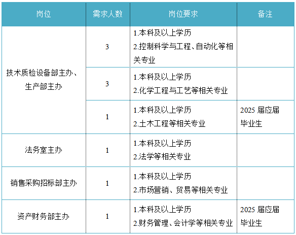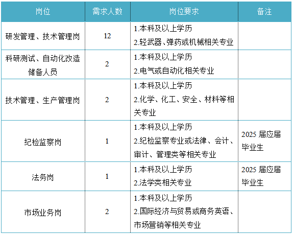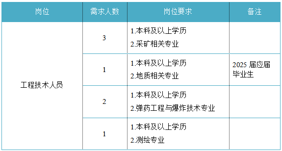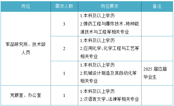 福建省機電(控股)有限責任公司(福建省國防科技工業(yè)公司)是由原省國防科工辦所屬企業(yè)為主,原省機械廳所屬企業(yè)劃入組建的省國資委出資的國有企業(yè),現(xiàn)有全資、控股和參股企業(yè)48家。 在閩唯一一家地方軍工企業(yè);民爆物品生產(chǎn)與銷售資質(zhì)、軍品科研與生產(chǎn)資質(zhì)、硝酸銨生產(chǎn)與銷售資質(zhì)、營業(yè)性爆破作業(yè)單位一級資質(zhì)、礦山工程施工總承包一級資質(zhì)、環(huán)保工程專業(yè)承包三級資質(zhì);國家甲級設計院,擁有工業(yè)與民用建筑工程設計、咨詢、工程監(jiān)理等綜合資質(zhì);華東地區(qū)最大的硝酸銨生產(chǎn)企業(yè)... 省級重點實驗室 1個 省級工程技術(shù)研究中心 2個 省級企業(yè)技術(shù)中心 3個 省級技能大師工作室 2個 五險二金 帶薪年假 工會福利 健康體檢 午餐補貼 通訊補貼 文體活動...... (一)基本條件 1.具有中華人民共和國國籍,擁護中國共產(chǎn)黨的領(lǐng)導,熱愛社會主義; 2.遵紀守法,無違法違紀違規(guī)等不良記錄; 3.具有良好的身體素質(zhì)和心理素質(zhì); 4.具備符合崗位要求的文化程度和工作能力。 (二)資格條件 應屆高校畢業(yè)生(含:①2025年度應屆高校畢業(yè)生,以畢業(yè)證書落款年度為準,已簽訂就業(yè)協(xié)議、勞動合同、繳交社保等均不影響應屆生身份界定;②2024年度畢業(yè)、具有工作經(jīng)歷及社保繳交記錄的高校畢業(yè)生;③畢業(yè)離校兩年內(nèi)未就業(yè)的高校畢業(yè)生,畢業(yè)證書落款時間應為2023年1月1日以后),具備符合崗位要求的文化程度和工作能力。 聯(lián)系人:吳先生 聯(lián)系電話:0598-3838649 工作地點:福建永安 1.福建海峽科化股份有限公司永安分公司(1人) 聯(lián)系人:田經(jīng)理 聯(lián)系電話:0598-3810809 工作地點:福建永安 2.福建海峽科化股份有限公司福安分公司(1人) 聯(lián)系人:林經(jīng)理 聯(lián)系電話:0593-6330993 工作地點:福建福安 3.福建海峽科化股份有限公司烽林分公司(7人) 聯(lián)系人:吳經(jīng)理 聯(lián)系電話:0598-2792107 工作地點:三明明溪 4.福建海峽科化股份有限公司永春分公司(3人) 聯(lián)系人:賀經(jīng)理 聯(lián)系電話:0595-23989536 工作地點:福建永春 5.福建海峽科化富興建設工程有限公司(7人) 聯(lián)系人:楊女士 聯(lián)系電話:18250589968 工作地點:福建三明 6.福建民化建設工程有限公司(2人) 聯(lián)系人:鄒女士 聯(lián)系電話:13950807836 工作地點:福建省內(nèi) 7.青海青樂化工機械有限責任公司(22人) 聯(lián)系人:李先生 聯(lián)系電話:0972-8655285 工作地點:青海省海東市樂都區(qū) 8.青海海西東諾化工有限公司(4人) 聯(lián)系人:郭先生 聯(lián)系電話:13860516289 工作地點:青海省德令哈市 聯(lián)系人:李先生 聯(lián)系電話:0533-2343718 工作地點:山東沂源 聯(lián)系人:米先生 聯(lián)系電話:15280522275 工作地點:福建邵武 福建省機電沿海建筑設計研究院有限公司(4人) 聯(lián)系人:李女士 聯(lián)系電話:0591-87386017 工作地點:福建福州 福建智和置業(yè)有限公司(2人) 聯(lián)系人:吳先生 聯(lián)系電話:18695719052 工作地點:福建福州 符合崗位招聘條件的應聘者可請將簡歷投遞至指定郵箱:fndic25@163.com;并將郵件標題和簡歷名稱命名為“崗位+姓名+畢業(yè)院校+專業(yè)”。 即日起開始接受報名,截止時間為2024年12月31日。 招聘工作按照簡歷投遞-資格審查篩選-筆試-面試-發(fā)放OFFER-體檢-公示-簽約錄用等程序進行。 資格審查貫穿招聘全過程,在招聘各環(huán)節(jié)若有發(fā)現(xiàn)報考信息不實、條件不符等情形的,一律取消應聘資格,不得進入下一環(huán)節(jié);已經(jīng)錄用的,我司有權(quán)解除勞動關(guān)系,由此發(fā)生的個人損失由應聘人員自行承擔。 按照招聘條件對應聘人員進行資格審查,擇優(yōu)確定參加筆試和面試人員。審核通過者將通過電話或郵件方式通知,審核未通過者不再另行通知。 公開招聘工作堅持“公開、平等、競爭、擇優(yōu)”的原則,嚴肅紀律,秉公辦事,嚴禁弄虛作假,徇私舞弊,全程接受紀檢監(jiān)察部門和社會的監(jiān)督。報考者有弄虛作假、違紀違規(guī)行為的,一經(jīng)發(fā)現(xiàn),均取消其應聘資格,并將有關(guān)情況通報其所在學校或單位。構(gòu)成犯罪的,依法追究刑事責任。