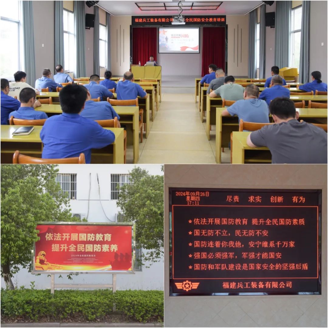 權屬兵工裝備公司以“我們的國防”為主題,邀請當地武裝部領導以及公司國家安全人民防線辦主任開展了國防教育專題講座,讓干部職工深入了解我國國防的現狀和未來發展方向;組織干部職工200余人,參加了“2024年福建省全民國防教育知識網絡問答”活動,通過知識問答的形式普及國防知識,增強國防意識。
